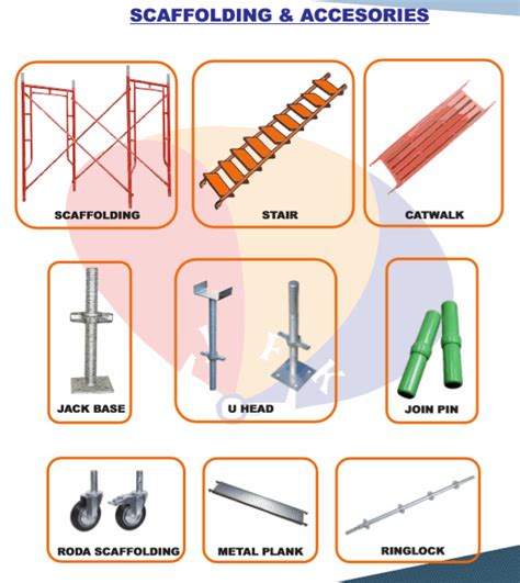 Berikut adalah beberapa nama alat scaffolding yang biasa digunakan:
